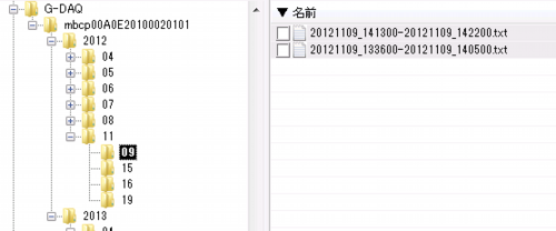 上の図のアプリケーション(G-DAQ)を立ち上げるとこのフォルダの内容を表示しますので、いろいろ試しながら覚えてください。